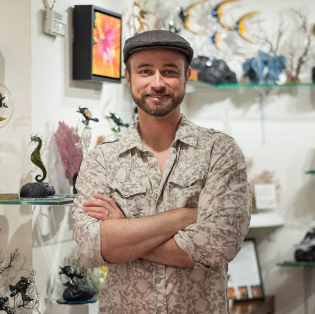 John Lindquist discovered lampworking on a spring break trip to Vancouver, BC while attending University of Minnesota Duluth. In 2004 John moved to Maui where he discovered Maui Crystal, he became an apprentice under Sean Price for the next 5 years. As a result of John's talent, training, and curiosity, he has found success in the art of lampworking. He is a showing member of the Lahaina Art Society, Maui's Finest Craft Fair, and Artists of Maui. In 2011, John and his wife opened Kai Pua in the space once known as Maui Crystal where John's apprenticeship began. After the Lahaina fire, Kai Pua Artist Studio currently does not have a gallery, but instead John and Anna do various pop-ups at resorts and artfairs around Maui.