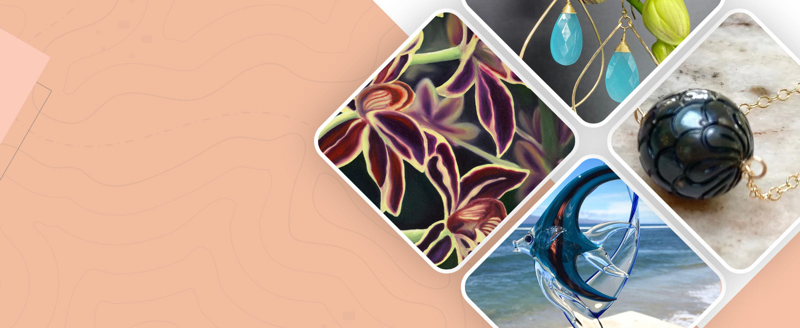 Anna Keay Lindquist was born and raised on the coast in Northern California. While pursuing an art degree from Humboldt State University, Anna relished in many mediums including jewelry, ceramics, and painting. For the first 15 years of her art career, she focused on oil paintings of large tropical flowers from her sister’s flower farm on Maui. This led to her moving to Maui in 2004 where she lived on the flower farm, enjoying the rain forest, and painting her subjects. Along the way, Anna met another artist, glass sculptor John Lindquist, and they were soon married and opened Kai Pua Gallery. Once having kids, Anna started painted less, and she started to gravitate back to her jewelry making passion. Now Anna paints part time and her main focus is on her gorgeous ocean themed jewelry using endemic Hawaiian sunrise shells, pearls, geodes and gemstones.